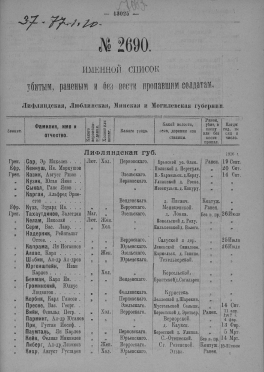 Именной список убитым, раненым и без вести пропавшим солдатам, [1914-1917]. № 2690, Лифляндская, Люблинская, Минская и Могилевская губернии