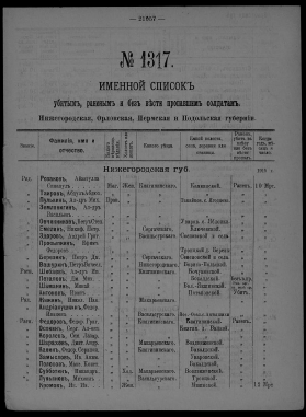 Именной список убитым, раненым и без вести пропавшим солдатам, [1914-1917]. № 1317, Нижегородская, Орловская, Пермская и Подольская губернии