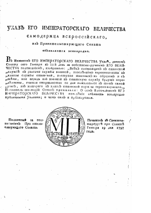 Экз. РНБ входит в конволют с тит. л.: Указы государя императора Павла Перваго, самодержца всероссийскаго. Москва: В Сенатской типографии. 18.293.1.1-3-60