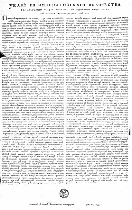 Текст начинается словами: Понеже в присланном ея императорскаго величества из Правительствующаго Сената декабря 22 дня прошлаго 1747 году, в Камор колегию указе, между протчим написано...