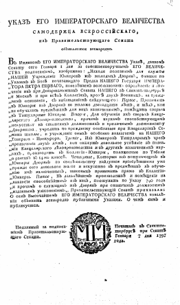 Экз. РНБ входит в конволют с тит. л.: Указы государя императора Павла Перваго, самодержца всероссийскаго. Москва: В Сенатской типографии. 18.293.1.1-3-55