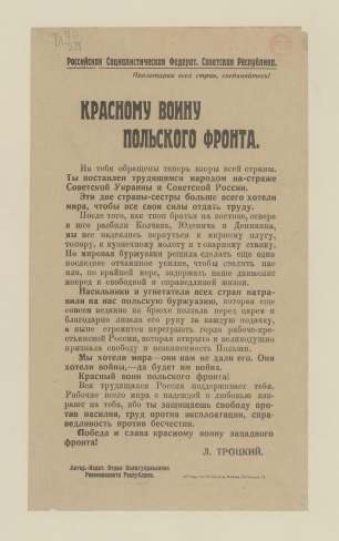 Красному воину польского фронта. "На тебя обращены теперь взоры всей страны ..." : [листовка]