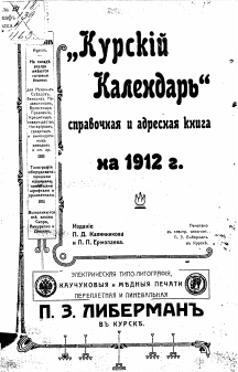 "Курский календарь". Справочная и Адресная книга на 1912 г. / Изд. П.Д. Калинникова и П.П. Ермолаева