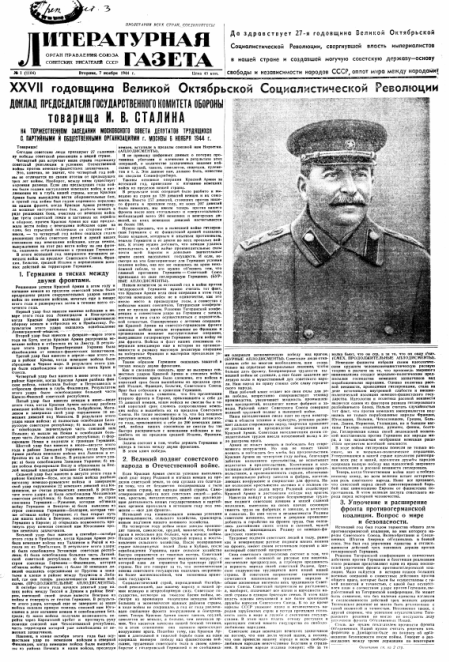 С 7 нояб. 1944 выходит под загл. «Литературная газета»
