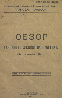 Перед текстом загл.: "Обзор народного хозяйства Архангельской губернии на 1-е декабря 1924 года"