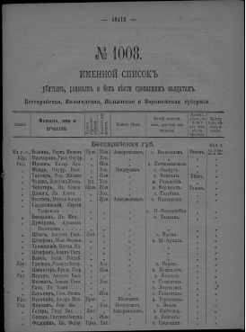 Именной список убитым, раненым и без вести пропавшим солдатам, [1914-1917]. № 1008, Бессарабская, Вологодская, Волынская и Воронежская губернии