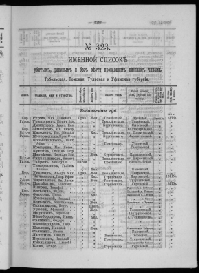 Именной список убитым, раненым и без вести пропавшим нижним чинам, [1914-1917]. № 323, Тобольская, Томская, Тульская и Уфимская губернии