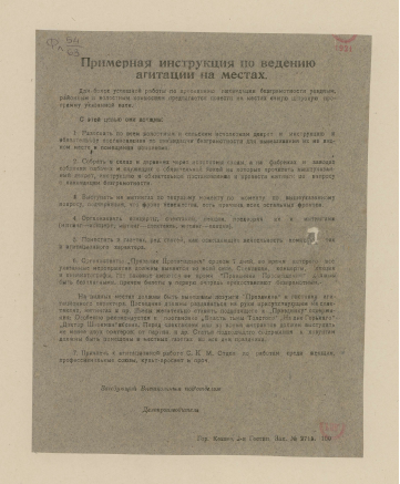 Примерная инструкция по ведению агитации на местах : [листовка / Козловский уезд. Совет р. и с. д.]