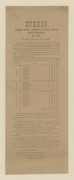 Приказ войсковым частям и учреждениям Тихвинского уездного военного комиссариата № 261, 22 июля 1920 г., г. Тихвин: [О закупке лошадей : листовка / Тихвинский уезд. комиссариат по военным делам]