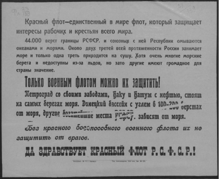 "Красный флот - единственный в мире флот, который защищает интересы рабочих и крестьян всего мира ..." : [листовка]