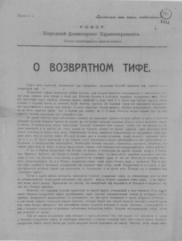 О возвратном тифе : [листовка]
