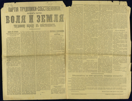 Партия трудовики-собственники. Лозунг партии: Воля и земля трудовому народу в собственность : [листовка]