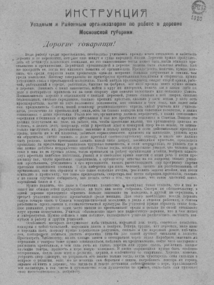 Инструкция уездным и районным организаторам по работе в деревне Московской губернии : [листовка / Московский комитет РКП(б)]