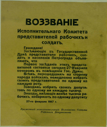 Воззвание Исполнительного Комитета представителей рабочих и солдат. Граждане! Заседающие в Государственной Думе представители рабочих, солдат и населения Петрограда объявляют ... : [листовка]