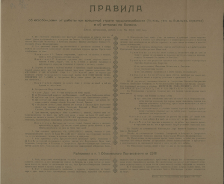 Правила об освобождении от работы при временной утрате трудоспособности (болезнь, уход за больными, карантин) и об отпусках по болезни : (обязат. постановление, опублик. в Зн. Рев. 26/III 1920 г.); [листовка / Отдел здравоохранения Казанского губ. Совета]