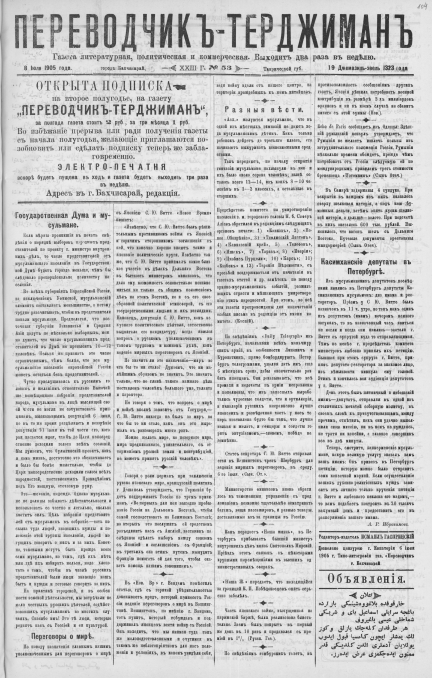 Сводное описание: Переводчик : Газ. лит., полит. и коммер. / Ред.-изд. И.ГаспринскийЯзык: русский ; татарский ; тюркские.Выходные данные: Б. м., 1905Коллекции Электронной библиотеки: Периодические издания -- ГазетыКоллекция: Национальная библиография Тип экземпляра: Выпуск газетыНет реальных экземпляров для этой записи