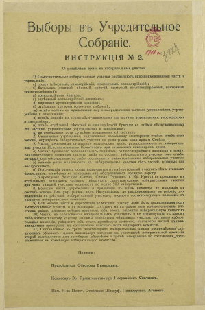 Выборы в Учредительное собрание. Инструкция №2. О разделении армиии на избирательные участки. Инструкция №3. Об участковых по делам о выборах в Учредительное собрание комиссиях : [листовка]