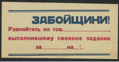 Забойщики! Равняйтесь по тов. __________ , выполнившему сменное задание за __________ на _____ % : [призыв]