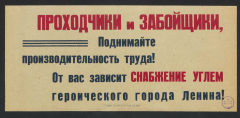 Проходчики и забойщики, Поднимайте производительность труда! От вас зависит снабжение углем героического города Ленина! : [призыв]