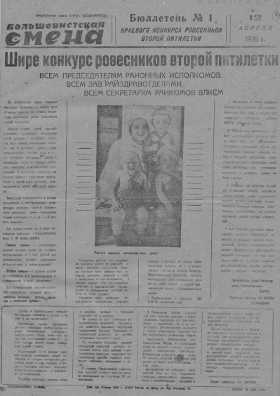 Большевистская смена. 1935, № 1 (12 апр.)