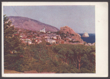 На адрес. стороне также текст: "Курорт с парком в 12 десятин и татарская деревня. Посадки состоят из кипарисов, кедров, магнолий, лавров и других вечно-зеленых деревьев. У самого моря оливковая роща. В середине старинный дом Раевских, у которых в 1820 г. жил Пушкин. Перед домом огромный платан и кипарис Пушкина... «Где стройно тополи в долинах вознеслись, Где дремлет нежный мирт и темный кипарис, И сладостно шумят Таврические волны»... Пушкин". Цитируется стихотворение А. С. Пушкина "Редеет облаков летучая гряда..." (1820), цитата неточная
