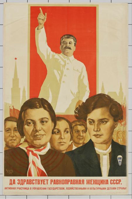 Да здравствует равноправная женщина СССР, активная участница в управлении государством, хозяйственными и культурными делами страны! : [плакат] / художники М. Волкова и Н. Пинус ; редактор А. Дружков ; техред Е. Струков