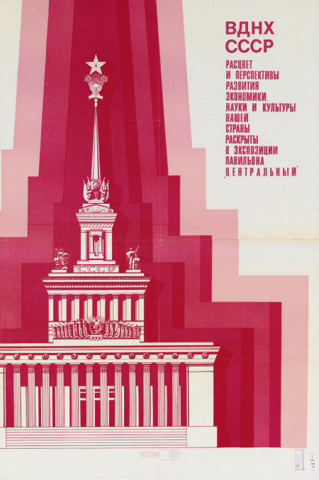 Расцвет и перспективы развития экономики, науки и культуры нашей страны раскрыты в экспозиции павильона "Центральный" : ВДНХ СССР; [плакат] / художник О. Кравченко ; редактор А. Осьмушкин ; худ. редактор В. Борисов