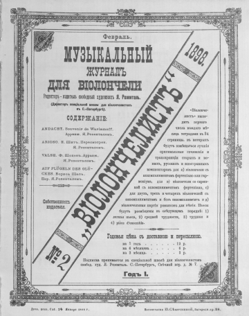 Виолончелист: Ноты. Andacht : [pour violoncelle et piano] / souvenir de Warlamoff