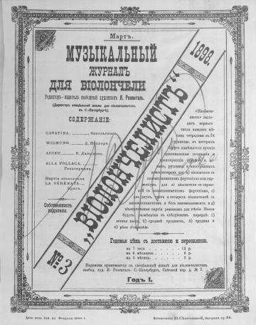 Автор: Запольский, Платон Васильевич (композитор ; 1838-1904), Композитор Автор (Вторич.): Розенталь, Яков Соломонович (виолончелист), Аранжировщик, Оркестровщик, Реализатор генерал-баса (редуцированной нотации) Сводное описание: Виолончелист: Ноты : музыкальный журнал для виолончели / ред.-изд. Я. РозентальЯзык: русский ; французский.Выходные данные: 1898Физическая характеристика: 17 с., 1 парт. (6 с.)Серия: Виолончелист ; № 3. мартИздается в одной обложке вместе с ...: Widmung Издается в одной обложке вместе с ...: Adieu Издается в одной обложке вместе с ...: Alla pollaca Приплетено к: Sarabanda à la Händel : [pour violoncelle et piano] / [musique de] baron M. Osten-Sacken Другие классификации: ( ) Щ955.6-42(3)я43Коллекции Электронной библиотеки: Нотные издания и аудиозаписиКоллекция: Отдел нот и звукозаписей ; Национальная библиографияОнлайн доступ: Электронная копия Тип экземпляра: Ноты