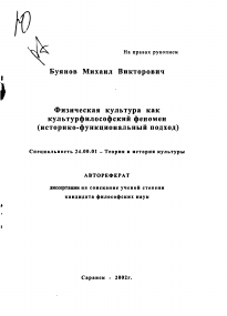 Физическая культура как культурфилософский феномен : (Историко-функц. подход); Автореф. дис. на соиск. учен. степ. к.филос.н.; Спец. 24.00.01 / Буянов Михаил Викторович ; [НИИ гуманит. наук]