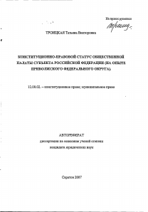 Конституционно-правовой статус Общественной палаты субъекта Российской Федерации : (на опыте Приволжского Федерального округа); автореф. дис. на соиск. учен. степ. канд. юрид. наук; специальность 12.00.02 <Конституц. право; муницип. право> / Троицкая Татьяна Викторовна ; [Сарат. юрид. ин-т МВД России]