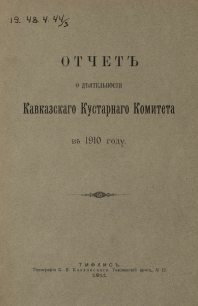Отчет о деятельности Кавказского кустарного комитета и учреждений по кустарной промышленности на Кавказе... в 1910 г.