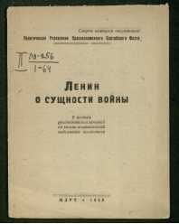 Ленин о сущности войны : в помощь руководителям занятий по военно-политической подготовке начсостава / [Е. Разин] ; Политическое управление Балтийского флота