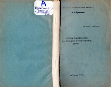 Взгляды Г.В. Плеханова на народное просвещение и школу / Перм. пед. ин-т