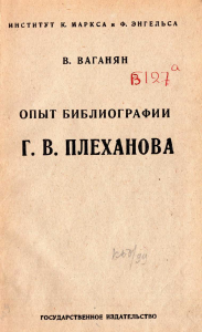 Опыт библиографии Г.В.Плеханова / [Предисл. - Д.Рязанов] ; Ин-т К.Маркса и Ф.Энгельса
