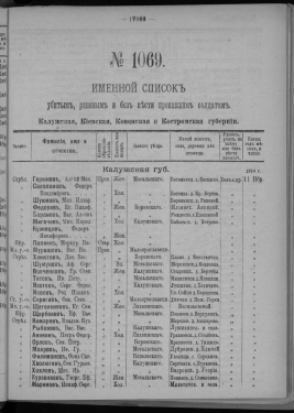 Именной список убитым, раненым и без вести пропавшим солдатам, [1914-1917]. № 1069, Калужская, Киевская, Ковенская и Костромская губернии