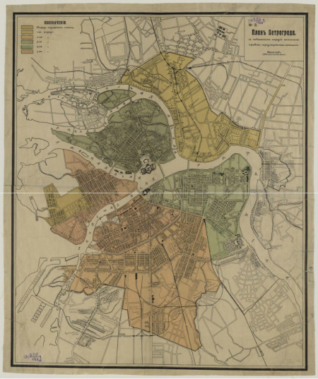 План Петрограда с показанием очередей выполнения проекта переустройства освещения