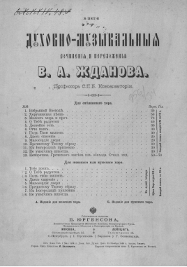 Духовно-музыкальные сочинения и переложения [Ноты] : для жен. хора без сопровожд. / В. А. ЖдановаЖданов, Василий Александрович (1845-1910) -- Композитор [ценз. 1894]Наличие: Экземпляры доступные для заказа: РНБ (Московский)Шифр хранения: 134.48 134.48 (1).