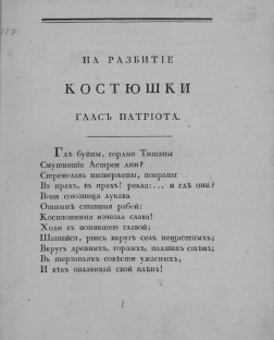 КнигаНа разбитие Костюшки глас патриотаДмитриев, Иван Иванович (1760-1837) -- Автор1794]Наличие: Экземпляры доступные для заказа: РНБ (Садовая)Шифр хранения: 18.153.2.107 (1).