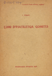 КнигаÇәmi d'pjatiletqa qәmetә / I. StalinСталин, Иосиф Виссарионович (1879-1953), Автор 1933Наличие: Экземпляры доступные для заказа: РНБ (Московский)Шифр хранения: ОНЛ Ассир./2-55 (1).