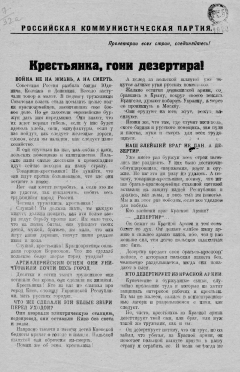 КнигаКрестьянка, гони дезертира! : [листовка][1920]Наличие: Экземпляры доступные для заказа: РНБ (Садовая)Шифр хранения: ФЛ 7/32 (2).