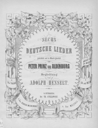 НотыDas Vergissmeinnicht [Ноты] : "O! Vergissmein nicht so lieblich..." : für eine Singstimme mit Begleitung des Pianoforte / gedichtet und in Musik gesetzt von Peter Prinz von OldenburgОльденбургский, Петр Георгиевич (принц ; 1812-1881), Композитор, Лирик ценз. 1875Наличие: Экземпляры доступные для заказа: РНБ (Московский)Шифр хранения: 235-4/3255 235-4/3255 (1).