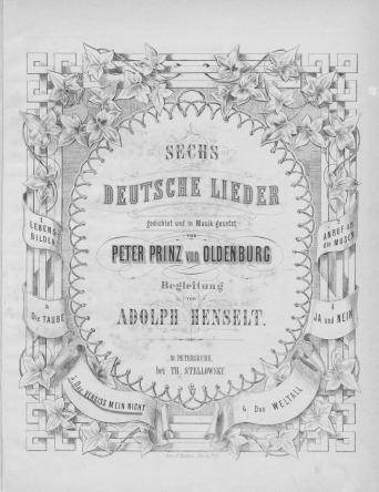 НотыJa und Nein [Ноты] : "Jazwei Worte giebt's hienieden..." : für eine Singstimme mit Begleitung des Pianoforte / gedicht und in Musik gesetzt von Peter Prinz von OldenburgОльденбургский, Петр Георгиевич (принц ; 1812-1881), Композитор, Лирик ценз. 1875Наличие: Экземпляры доступные для заказа: РНБ (Московский)Шифр хранения: 235-4/3256 235-4/3256 (1).