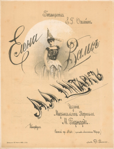 Елена [Ноты] : вальс : [для фортепиано] / А. А. Штарк ; посвящается Е. Г. ОголейтШтарк, А. А. (2-я пол. 19 - нач. 20 в.) -- Композитор ценз. 1890Наличие: Экземпляры доступные для заказа: РНБ (Московский)Шифр хранения: 560-4/746 560-4/746 (1).
