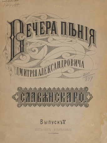 [18 народных песен] [Ноты]ценз. 1889Сводное описание: Наличие: Экземпляры доступные для заказа: РНБ (Московский)Шифр хранения: 110-4/С.470(5) 110-4/С.470(5) (1).