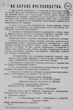 КнигаОб охране пчеловодства, [11 апр. 1919 г. : листовка]1921Наличие: Экземпляры доступные для заказа: РНБ (Садовая)Шифр хранения: ФЛ 9/101 (1).