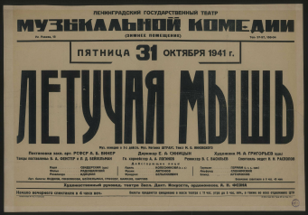 Визуальный материалКонцерт артистов Ленинградского государственного театра музыкальной комедии. Август, 4 пятница [1944 года] : участвуют: заслуженный артисты РСФСР Л.А. Колесникова, И.В. Кедров, А.А. Орлов, Н.Я. Янет. Артисты Н.И. Болдырева, Е.С. Бриль, Н.В. Колногорова [и др.]. Солисты балета Н.В. Пельцер, Л.М. Лидина, Л.Д. Бейзельман, А.Г. Комков. Симфонический оркестр Театра музыкальной комедии, дирижеры: М.П. Воловац, А.А. Логинов, Г.В. Фурман. Ведет концерт А.В. Васильев. Партия рояля Г.Ю. Каугер : [афиша] / Управление по делам искусств Исполкома Ленгорсовета, Сад отдыха (Закрытый летний театр)Ленинградский театр музыкальной комедии [1944]Онлайн доступ:Электронная копия Наличие: