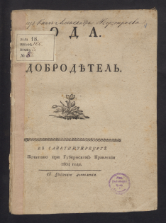 КнигаОда. ДобродетельЛебедев, Флавиан, Автор1804Наличие: Экземпляры доступные для заказа: РНБ (Садовая)Шифр хранения: 18.166.3.82 (1).