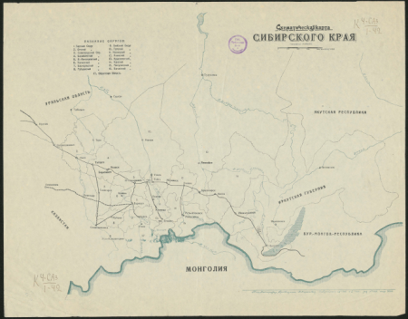 Сост. и вычерчена по новейшим материалам под рук. комис. Сибкрайисполкома в составе А.А. Аносова и др