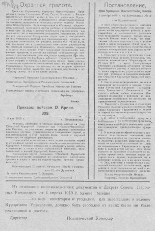 - Кубанская армия Революционный военный совет 9; 1920-1921 (3)